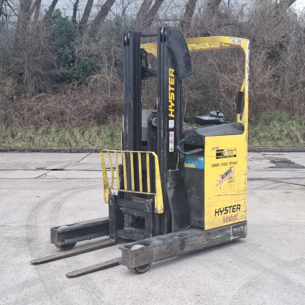 This reach truck was manufactured by HYSTER.